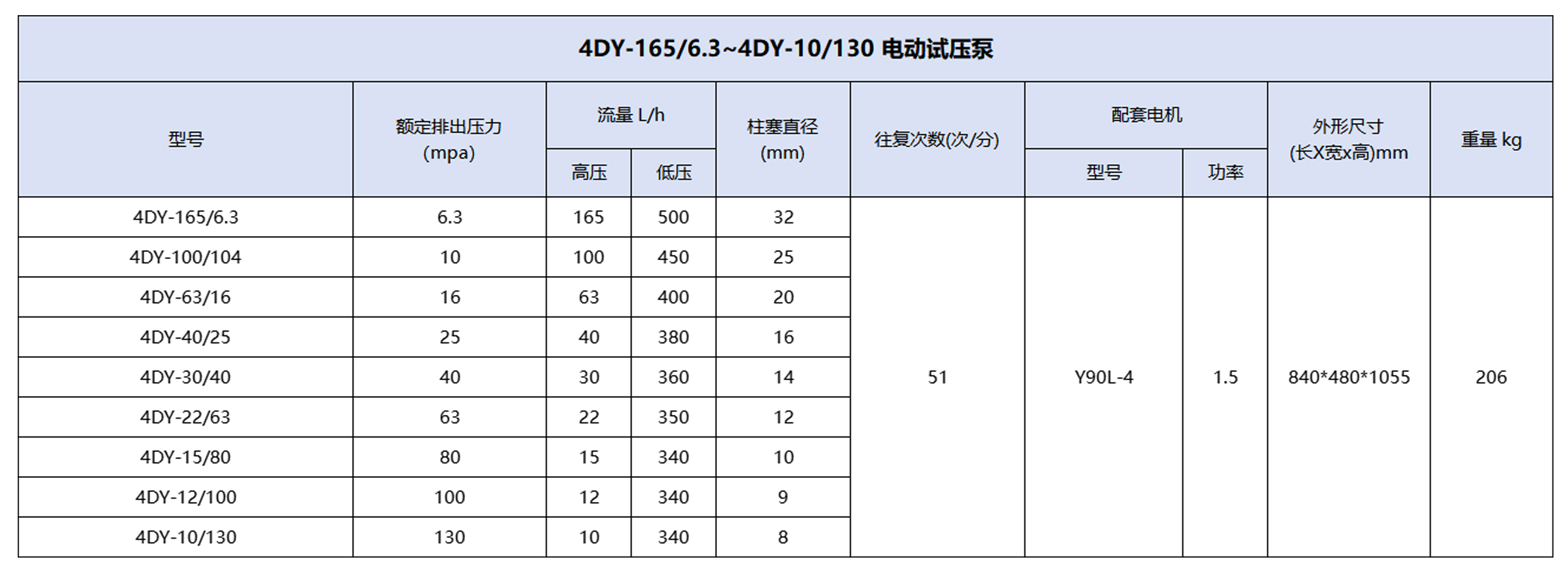 4DY-165/6.3~4DY-10/130 电动试压泵